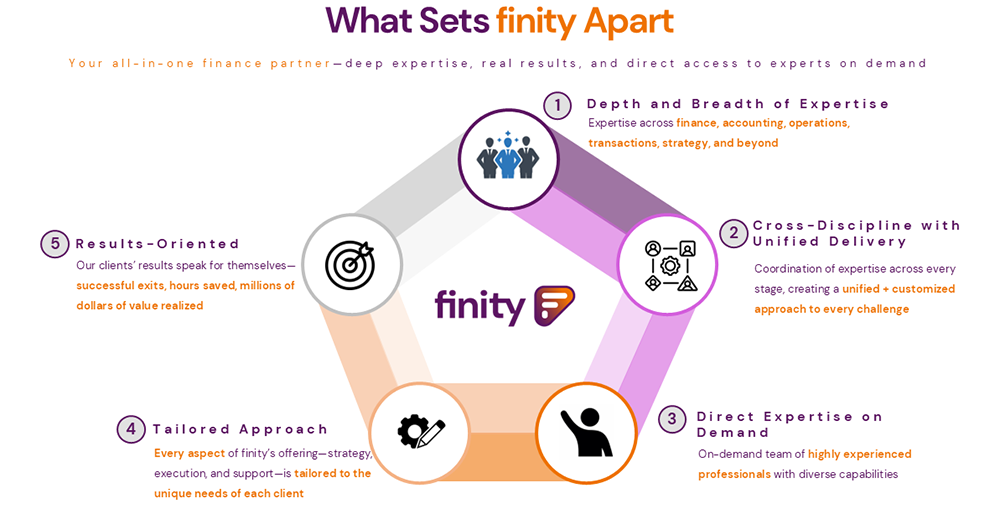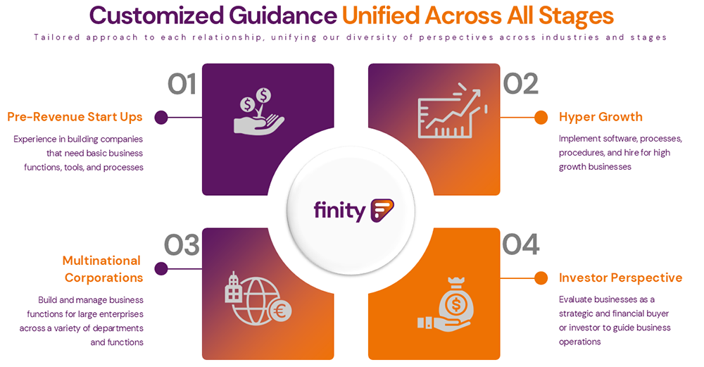 Founded by Tim Danser, a Silicon Valley finance specialist, Finity’s team includes experienced MBAs with deep knowledge of strategy, operations, and financial management. They bring big-picture thinking and innovative solutions to drive growth and efficiency.